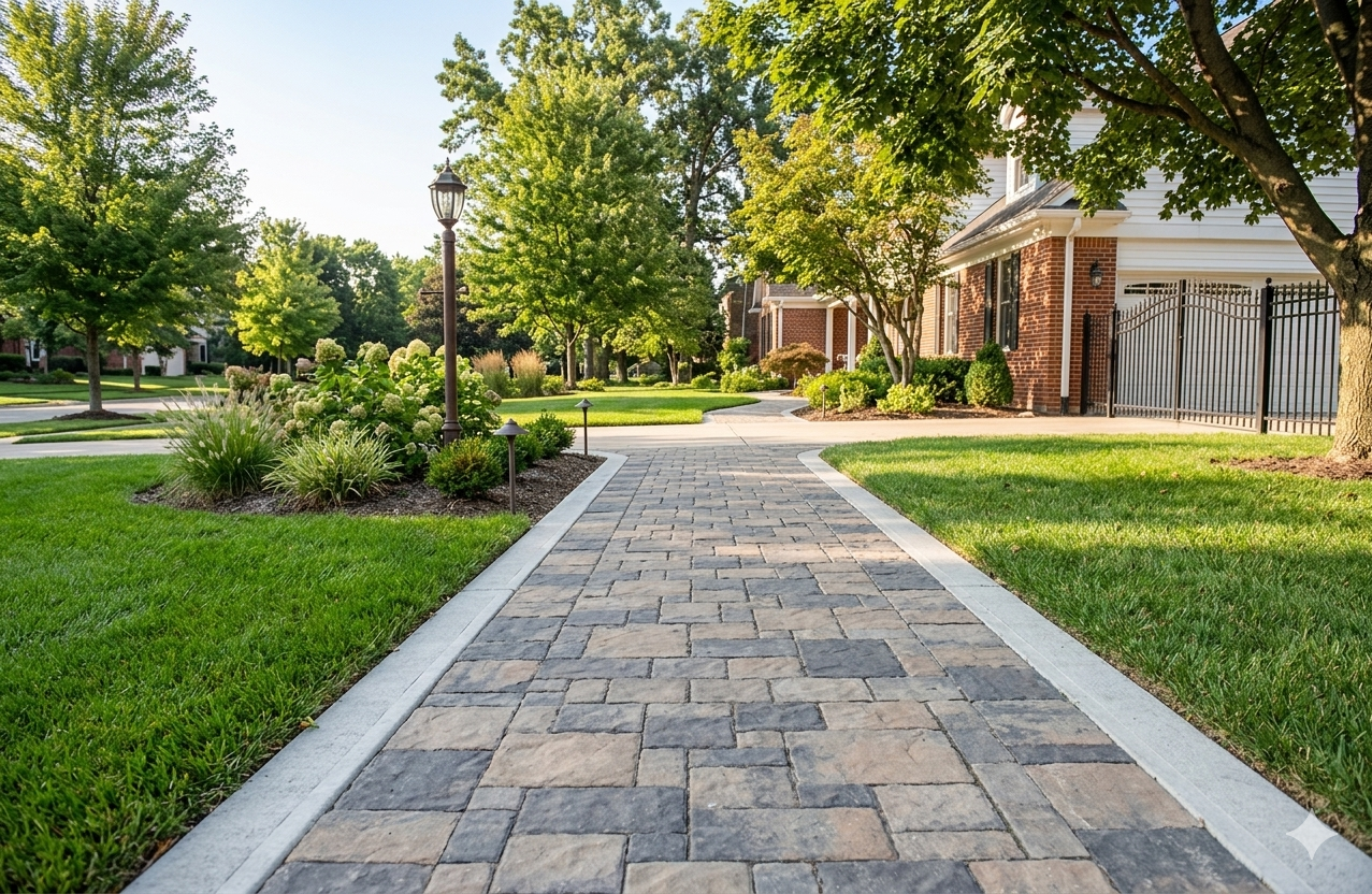 Custom paver sidewalks designed to enhance curb appeal and provide long-lasting durability for residential properties.